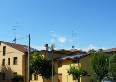 - Sostituzione locale del manto di copertura (tegole o coppi) con un rivestimento idoneo a cui si sovrappone il campo fotovoltaico, in modo che questo risulti affogato nel manto di copertura